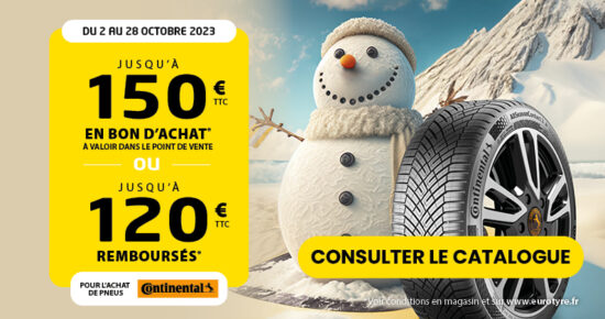 Du 2 Mai au 30 Juin 2023, chez Eurotyre, profitez d’une offre exceptionnelle sur les pneus Continental ! Jusqu’à 20€ […]